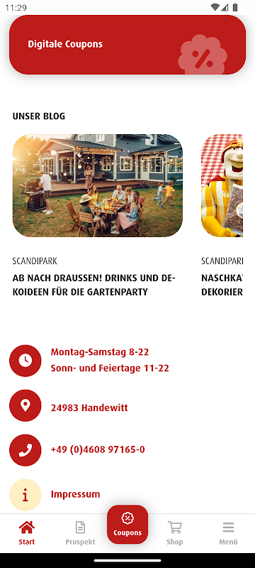 - News & Newsletter: On the one hand, the app offers registration for the ScandiPark newsletter, and on the other hand, exciting and inspiring blog posts about the shopping market and its range are constantly published there.