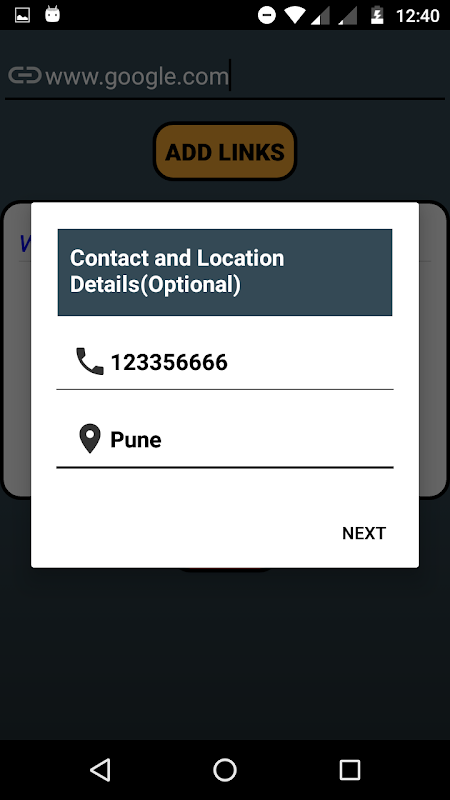 3) Generating QR Code with multiple links, Contacts and Location Details.