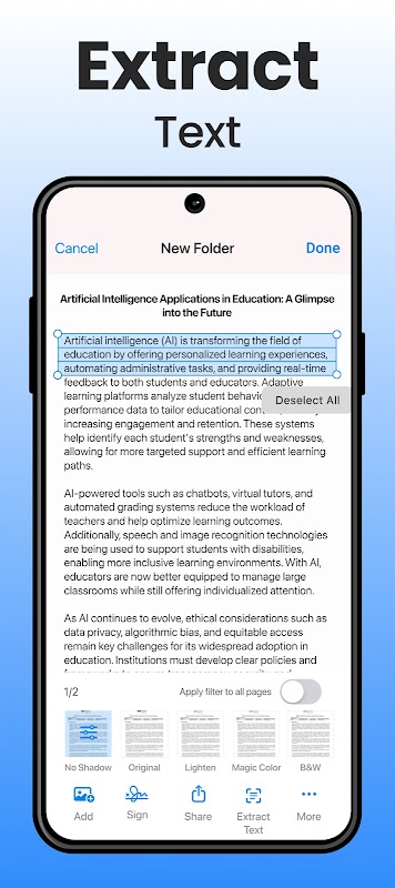 Polish your scans effortlessly with our built-in editor, offering features like cropping, brightness adjustment, contrast tuning, text extraction, text editing, and more.