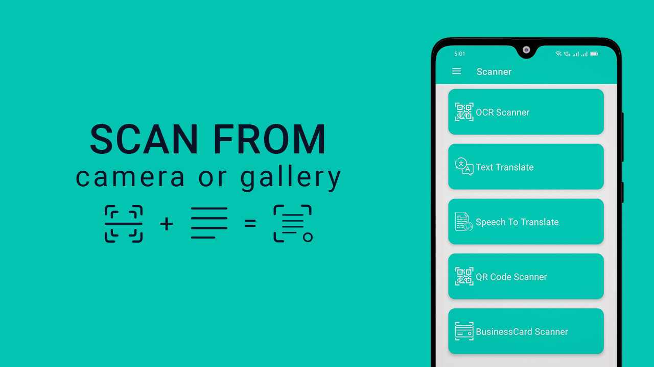 - QR Code Scanner, OCR Scanner, Business Card Scanner