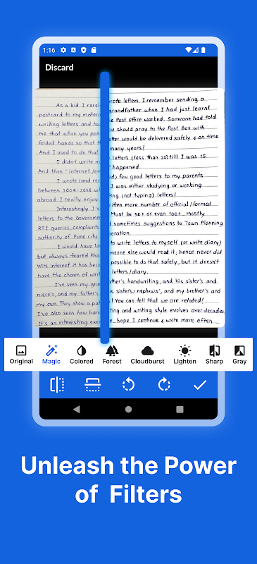 Our app offers a range of powerful features to help you manage your documents efficiently. With our image scanning filter, you can be sure that your scans will come out clear and legible. You can easily manage multiple pages and create folders to keep your documents organized.