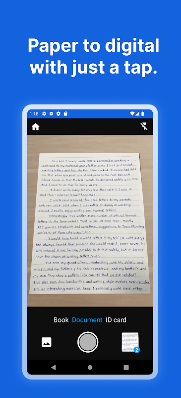 In addition to scanning regular documents, our app also allows you to scan ID and books with ease. And with our smooth cropping feature, you can easily remove any unwanted parts of the document. And if you need to merge multiple documents into one, our app can do that too.