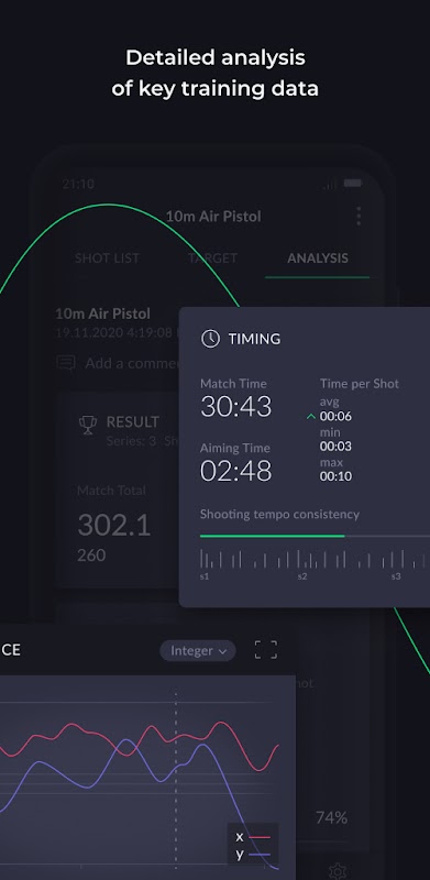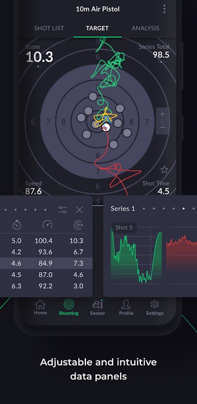 The app includes the ability to conduct live practice, analyze shot data, store and review your training sessions, as well as share your results with others.