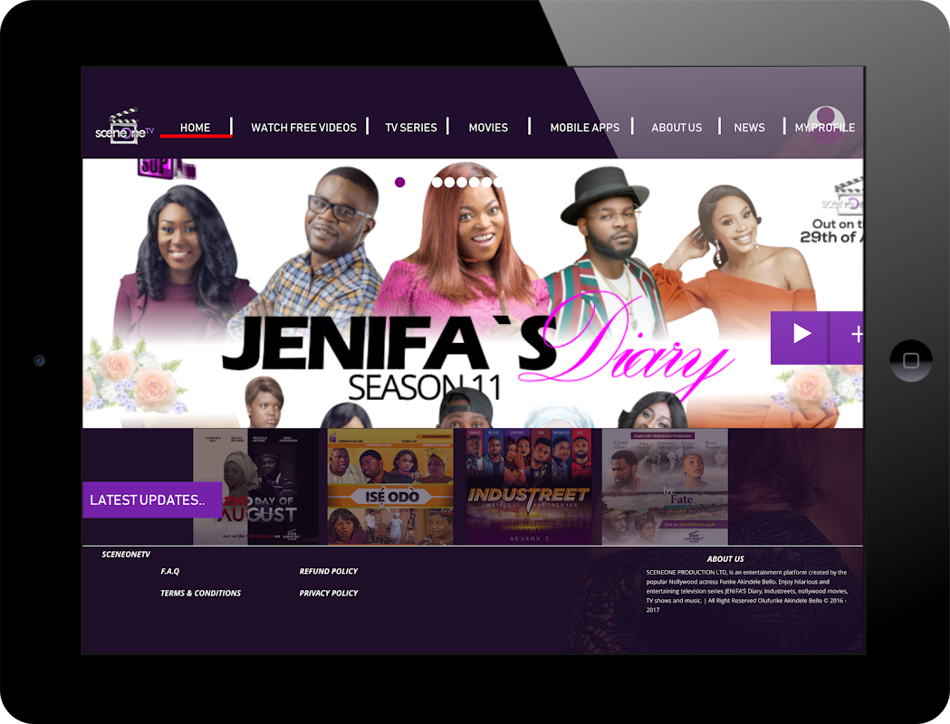 SCENEONE PRODUCTION LTD, is an entertainment platform created by the popular Nollywood actress Funke Akindele Bello. Enjoy hilarious and entertaining television series JENIFA'S Diary, Industreets, nollywood movies, TV shows and music.