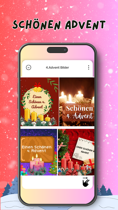Discover an impressive collection of beautiful Advent pictures in our app, including 1st Advent pictures, 2nd Advent pictures, 3rd Advent pictures and 4th Advent pictures. Share the festive atmosphere with your loved ones and let yourself be inspired by the atmosphere.
