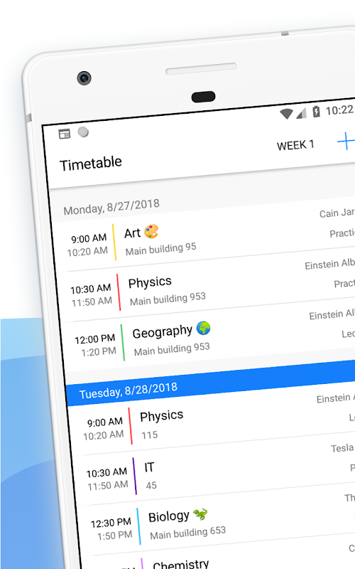 Too much homework? Keep forgetting what was set? Save your homework and everything you need for study right on your phone — Weeklie will remind you when it is time to get started. The timetable planner works with any school and lesson schedule.