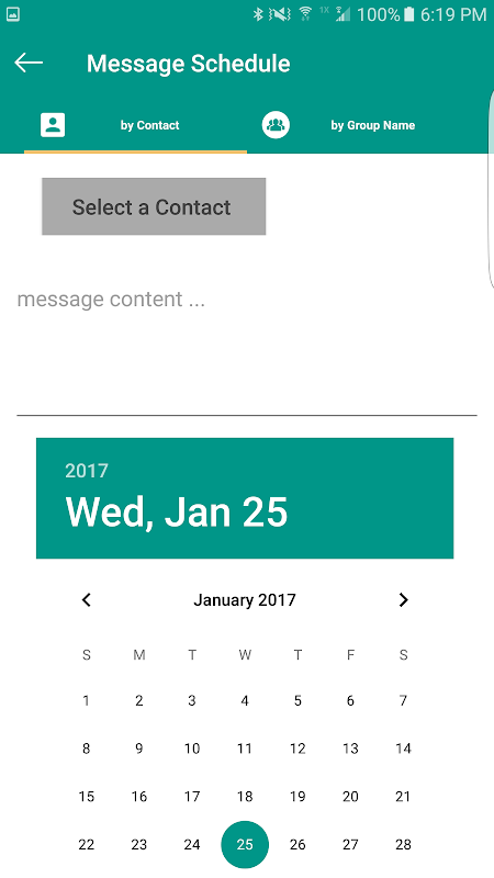 With Schedule Message you can schedule future messages you want to send to anyone at the right time through Hike or SMS.It's easy to use! You only need to select the contact you want to send a message, write the message and finally select the day and the hour that you want the message to be delivered.