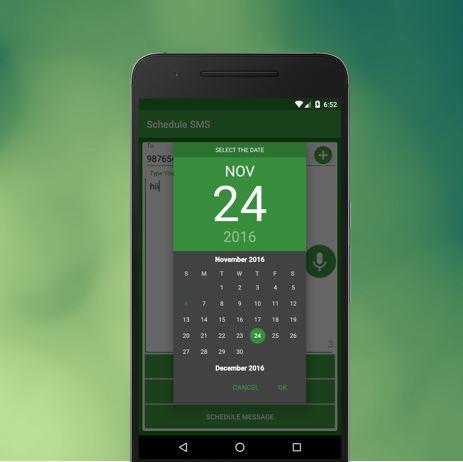 "Schedule SMS”, An application for automatic transfer of messages and a pre-fixed date and time app.