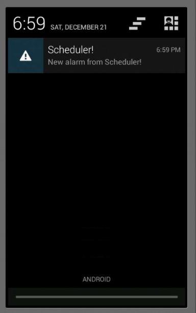 Scheduler is a simple application that lets users to create a list of tasks. Every task have an alarm date and time when the user will be notified of the task. Notification is via status bar and alarm sound. Easy to input, edit and delete tasks. Push your menu button, add new tasks or adjust settings. Layout for adding and editing is simple and contains only a few fields: Title, Text, Alarm Date, Alarm Time.
