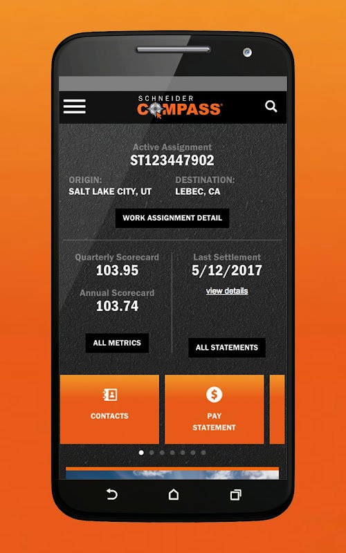 Compass gives Schneider’s company drivers the tools they need while on the road or at home. Using Compass provides immediate access to work assignments, settlement statements and pay details. Whether you’re reviewing the latest company news or just searching for the answer to a quick question, Compass helps make your day-to-day tasks easier and finding information more efficient. All existing apps have been combined into this convenient one-stop-shop!