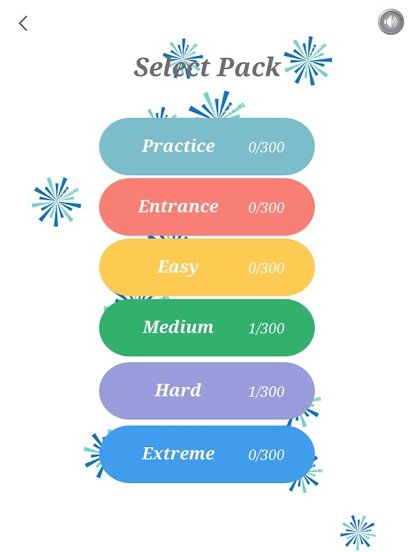 - a total of six levels of difficulty can be arbitrarily selected