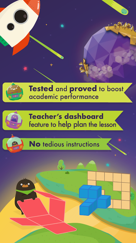 - A teacher’s dashboard is available to keep track of students’ scores and play history.