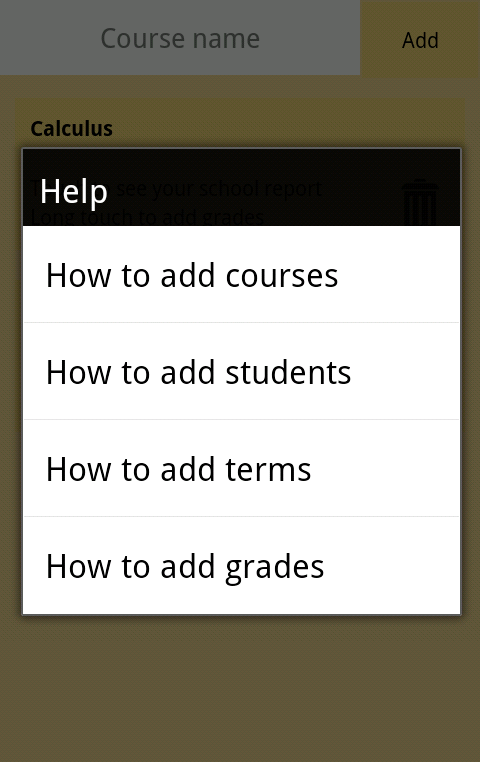 This application is adapted to evaluation systems with and without weight and also for different periods (quarters and semesters) and can be used for other courses beyond the school courses.