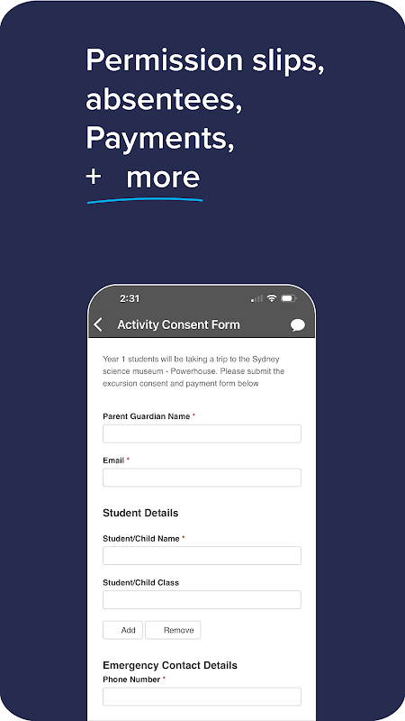 Receive event notices straight from school directly to your smartphone. Everything you need to know - including permission notes, time and date details, and even a location map.