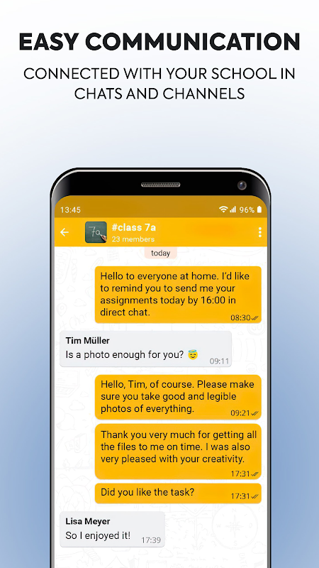 Students stay connected and informed: Homework and course materials directly in Messenger. Practical for teamwork in group work, sharing ideas and the creative use of digital media. Secure exchange within the school community without revealing private information.