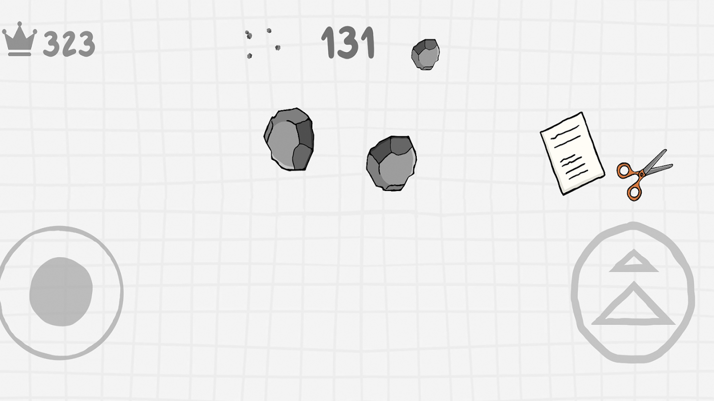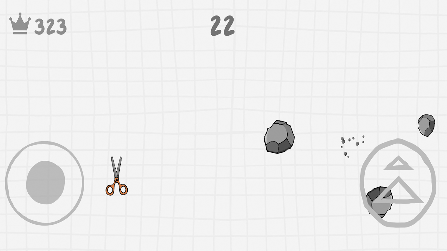 You are a scissor playing the casual game of rock paper scissors in a top down action style, you will have to survive to the rocks and cut the papers, or they could help you? You will get points after cutting papers or letting the rocks bounce againts the walls.