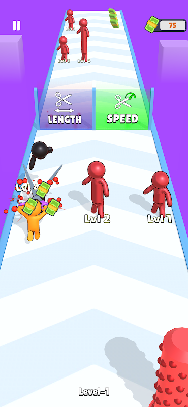 Improve your scissors by going through the doors, cut the enemy and cuttable objects on the platform, earn money and reach the finish with the best shape of scissors!