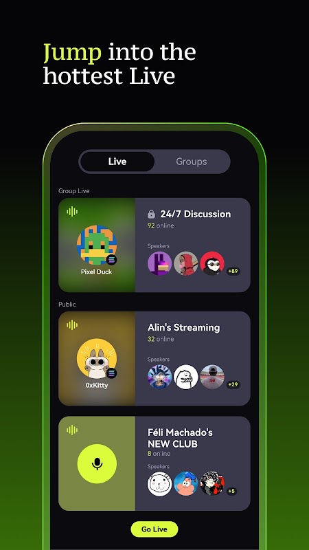 Join live voice discussions with ultra-low latency and crystal-clear sound.