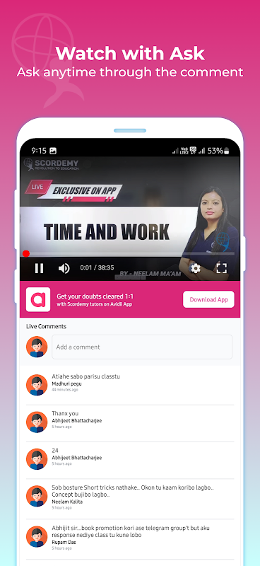 Live classes: Scordemy offers live classes so you can interact with your instructors and classmates in real time.