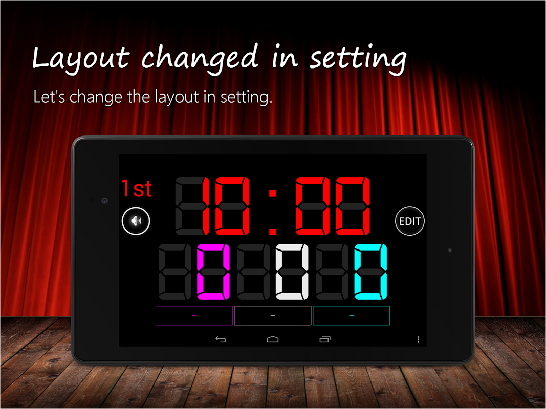 -Tap Timer: Start/Stop (Edit Timer: after tap EDIT button)