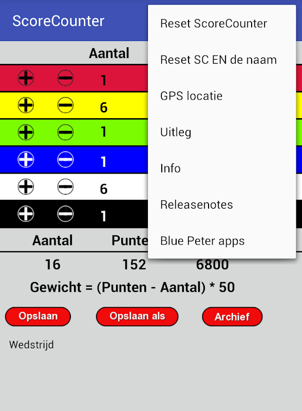 en rekent deze om naar het aantal punten en gemiddeld gewicht van één wedstrijd.