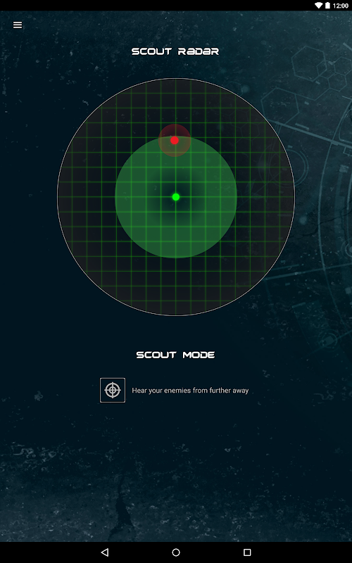 Scout Radar transforms your mobile device into a radar display that reveals your enemy's location in real time. Now, besides hearing your enemies, you can actually visualize and pinpoint your enemy's position.
