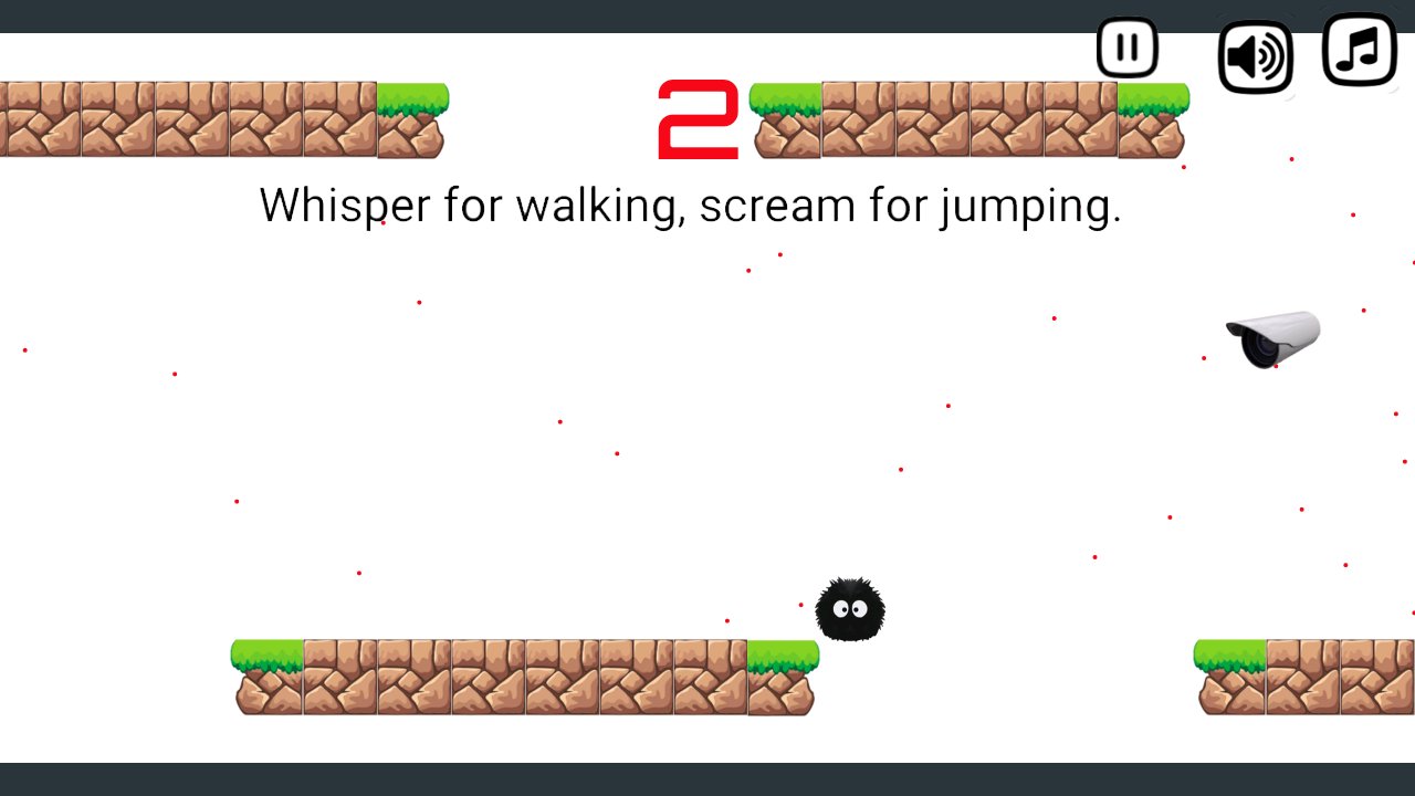 Scram Go pro No Voice Game. Use the don't sound to control the villain, across one obstacle after another! jumping app.