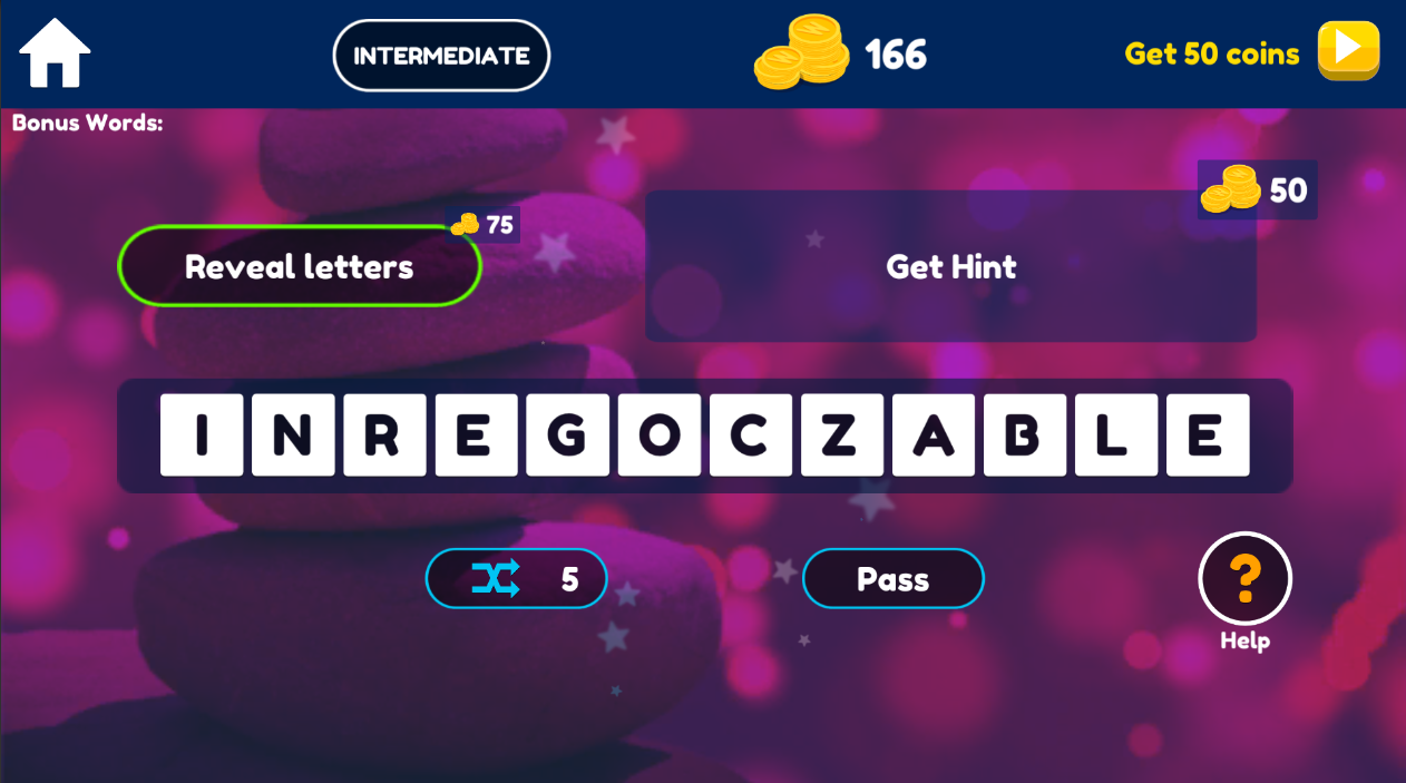 Can you unscramble a set of letters to make a word with limited clues? This game is designed to challenge and develop your English vocabulary and have fun at the same time. The objective is to figure out what word has been scrambled and rearrange the letters accordingly. Download now and enjoy!