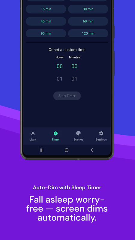 • Countdown timer to auto-dim or turn off light