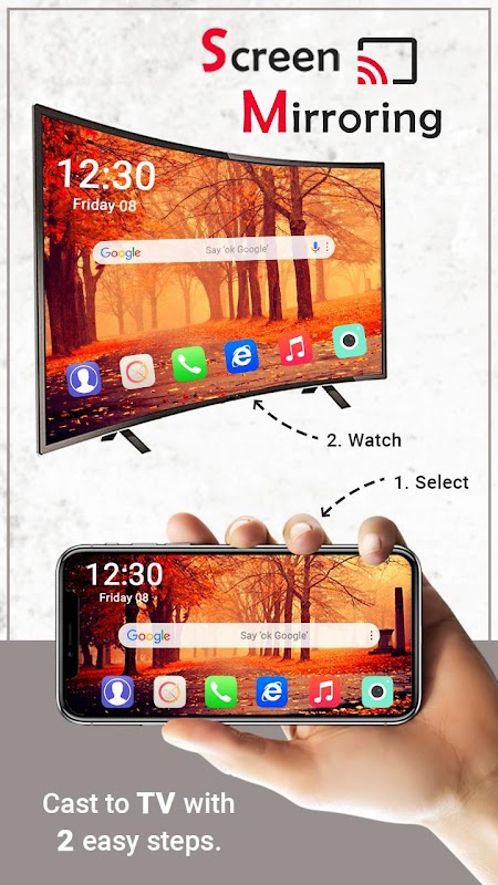 Screen Mirroring with TV App will assist you to scan and mirror your android phone or tab's screen on smart TV/Display or Wireless dongles or adaptors.