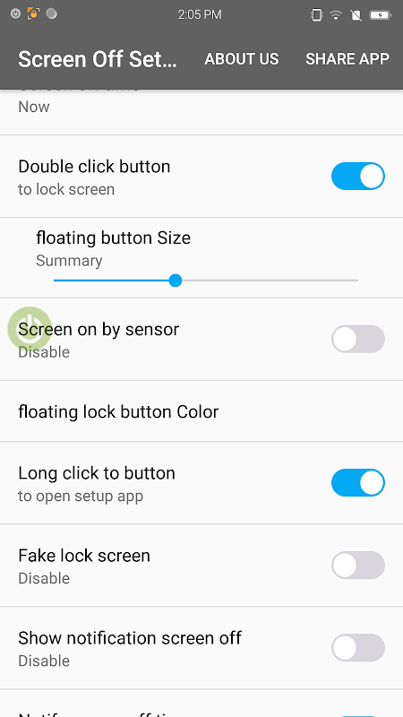 Show floating screen off button: Help turn off the screen at any interface.