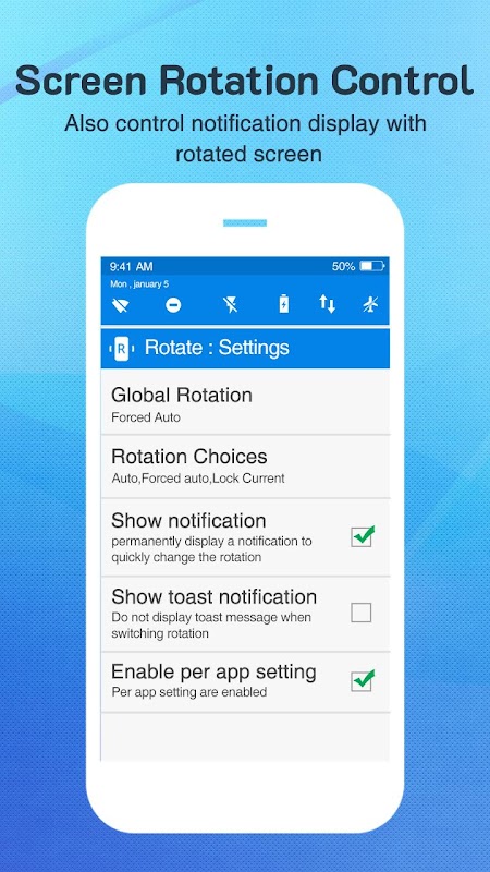 The one and only rotation control app that can REALLY LOCK your screen in ANY orientation and also FORCE the automatic orientation to override app specific settings.