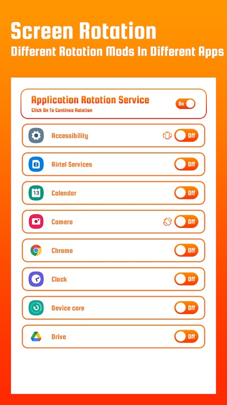 Set different modes of orientation as you want like portrait, landscape, horizontal, vertical, auto rotate mode.