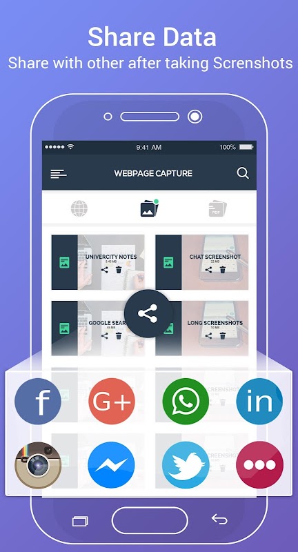 Web page Capture allows you to capture Longshot of any online book or novel and then save it as PDF file for later reading. It allows you to save a large amount of data in a single view. You can also save friends Facebook profile, comments, pictures in Twitter as a whole in just one view and then share them with your friends via Shareit whatsapp Messenger Twitter or Facebook etc.