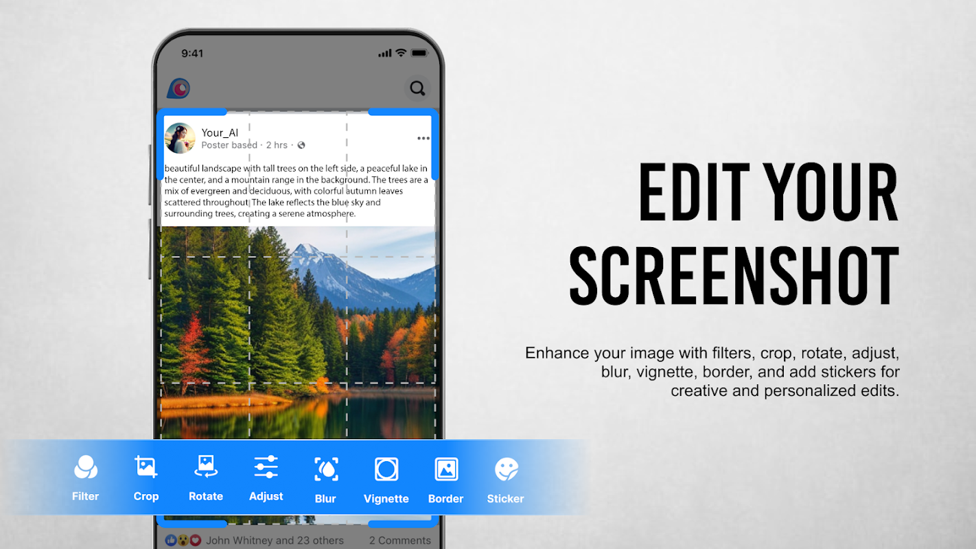 Our screenshot capture allows you to capture screenshots with floating buttons or by shaking your device. Now you can easily take screenshots while you are playing games or watching videos by using our smart screenshot capture tool. Our Screenshot & Editor also works to edit your screenshot with more editing tools, so you can easily enhance and markup your screenshots according to your needs.