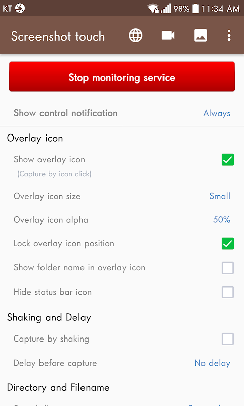 • Persistent notification (optional): This allows the notification to always remain present which cannot be swiped away. It quickens the accessibility of Screenshot touch.
