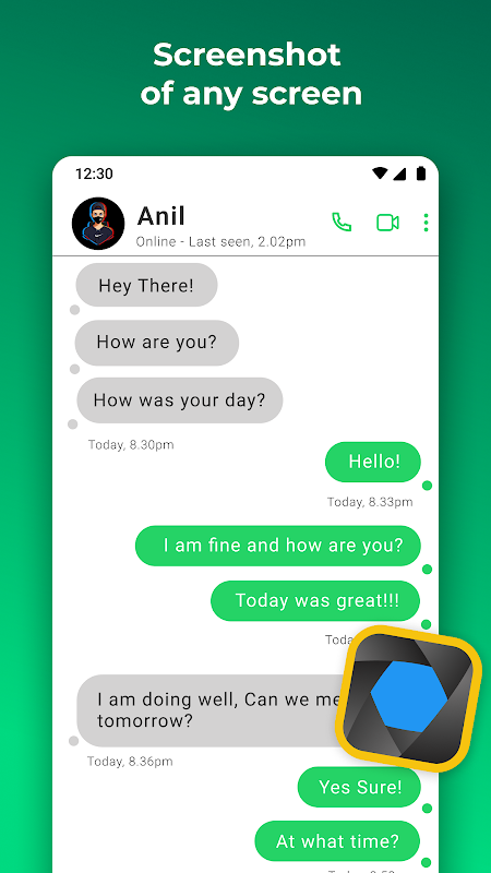 Tired of trying to capture screenshots with one hand or even two? With bigger phones, capturing the screen by pressing two buttons simultaneously is hard, and so are other gestures that mess up the screen. What if we tell you that we can help you to capture it in less than a second with only one tap of your finger with our handy screenshot capture tool? It's a flexible screen capture app that lets you share screen shots with anyone using phone tools already installed on your phone. Simple. Easy. Useful. And FREE!