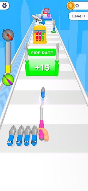 Swipe left and right to avoid obstacles and upgrade your screws. Reach the end and take your best screws!