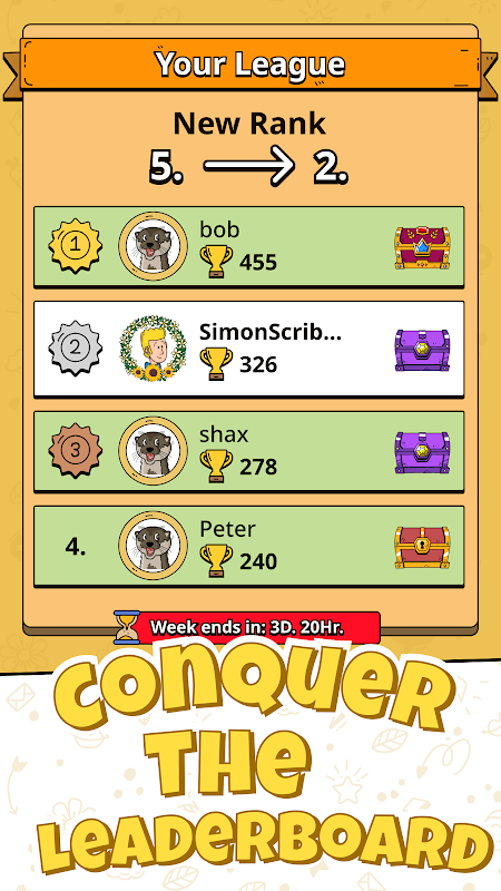 Global, Weekly and Friends leaderboards – Check your rank against the world, climb the leagues, or just your challenge your group of friends.