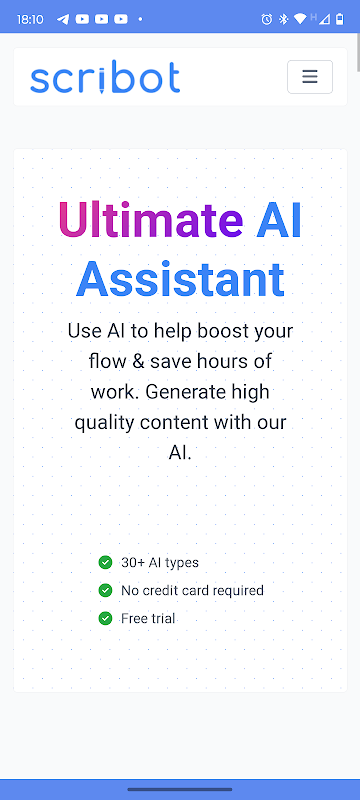 Scribot is an AI assistant tool, designed to assist users in generating unique content, refining existing text, or enhancing it through the integration of OpenAI, AWS Polly, and the ClipDrop API.
