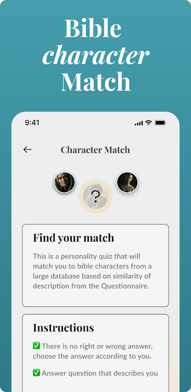 Ever wondered which biblical character shares your personality traits? Our app combines the excitement of personality discovery with the wisdom of scripture to create a unique spiritual journey tailored just for you.