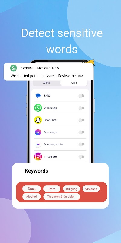 Scrnlink is the app every parent needs to keep their child safe online. Our advanced monitoring system checks text messages, YouTube, and over 30 social media platforms for cyberbullying, adult content, and other concerns. You'll receive alerts only when something potentially problematic occurs, so you can take action and keep your child safe.