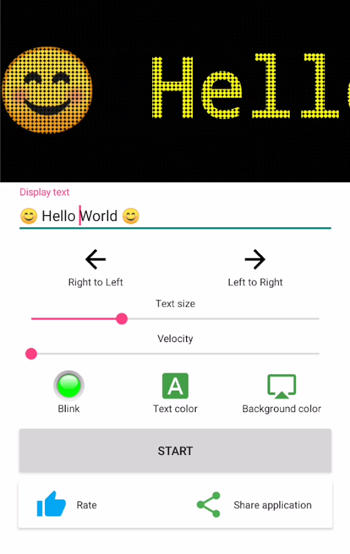- Select background color, size, text color and speed