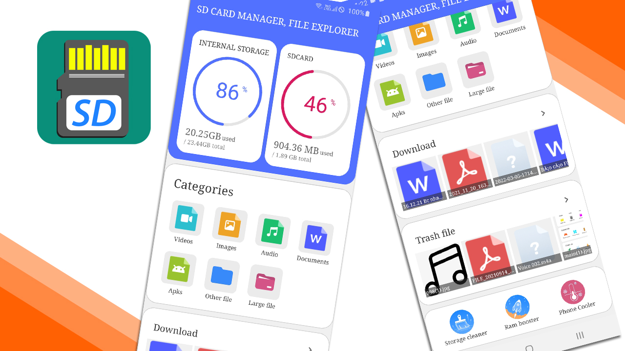 "SD Card Manager, File Explorer" also supports file manager for your device, view and manage photos, listen and manage music, watch and manage videos, manage apps and much more!