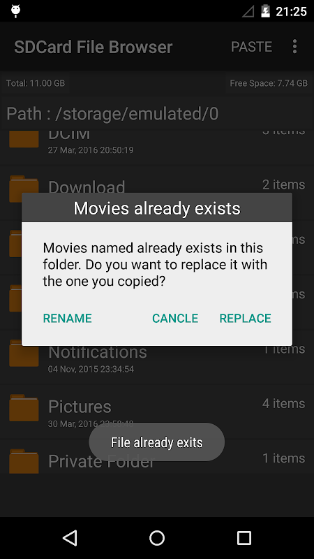 Manage your sdcard files efficiently and easily with File Browser.