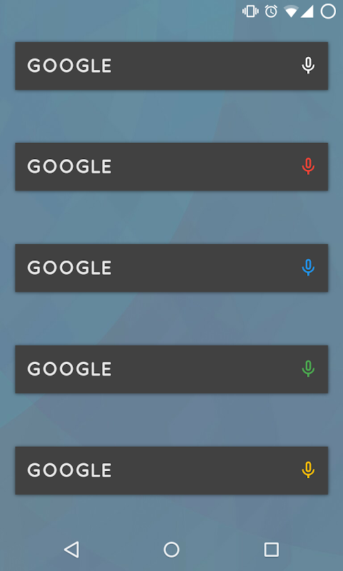 Please add a Komponent, then select this Komponent. The search bar looks best as a 1x4 widget on a 5x4 grid (at least on Nova Launcher). It may need to be scaled up or down.