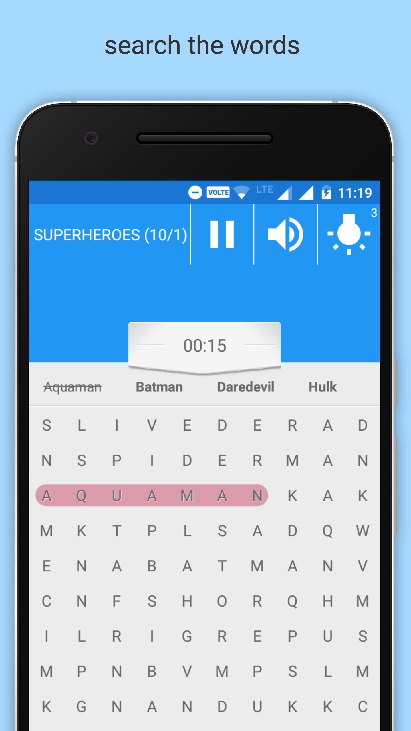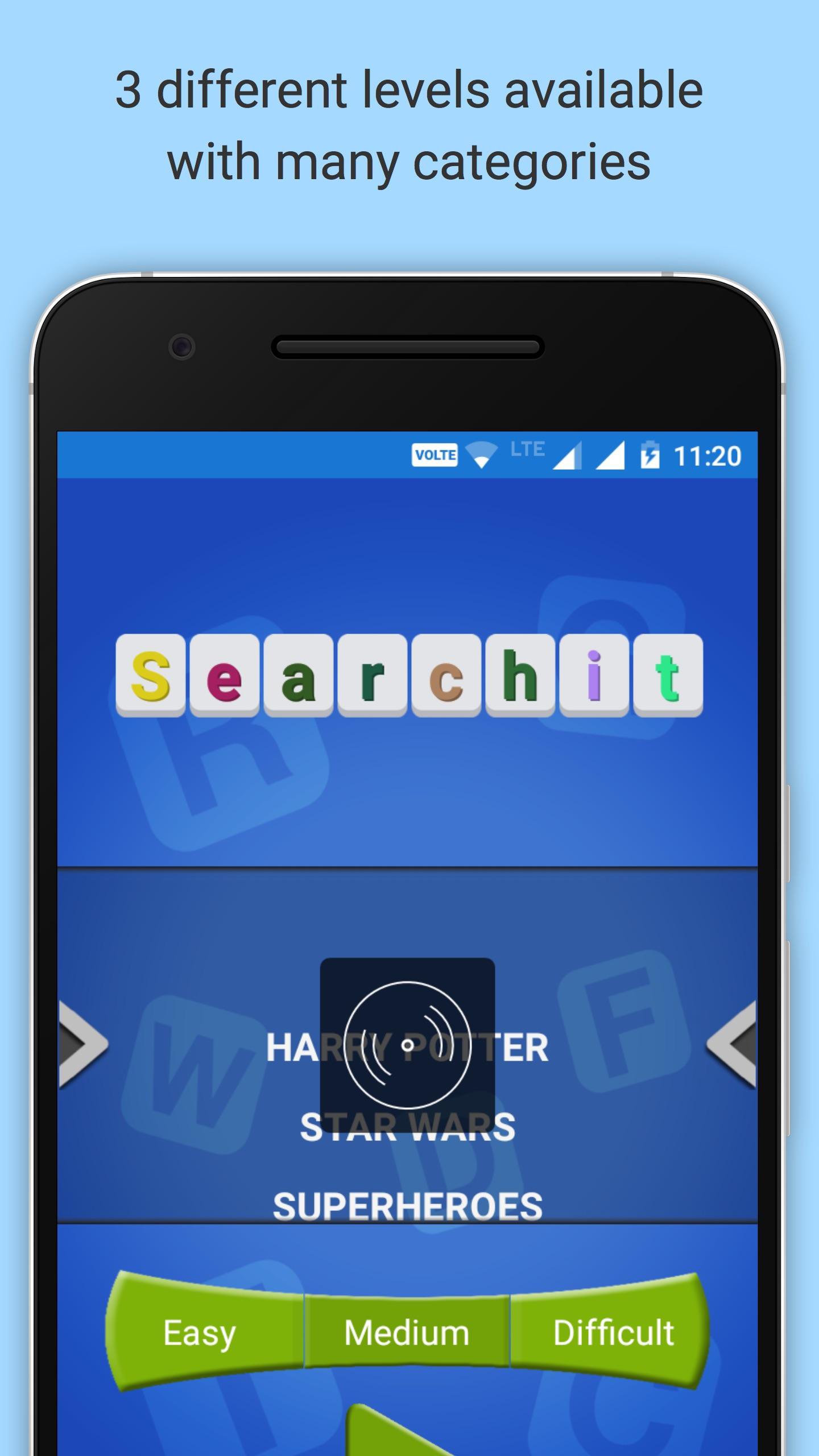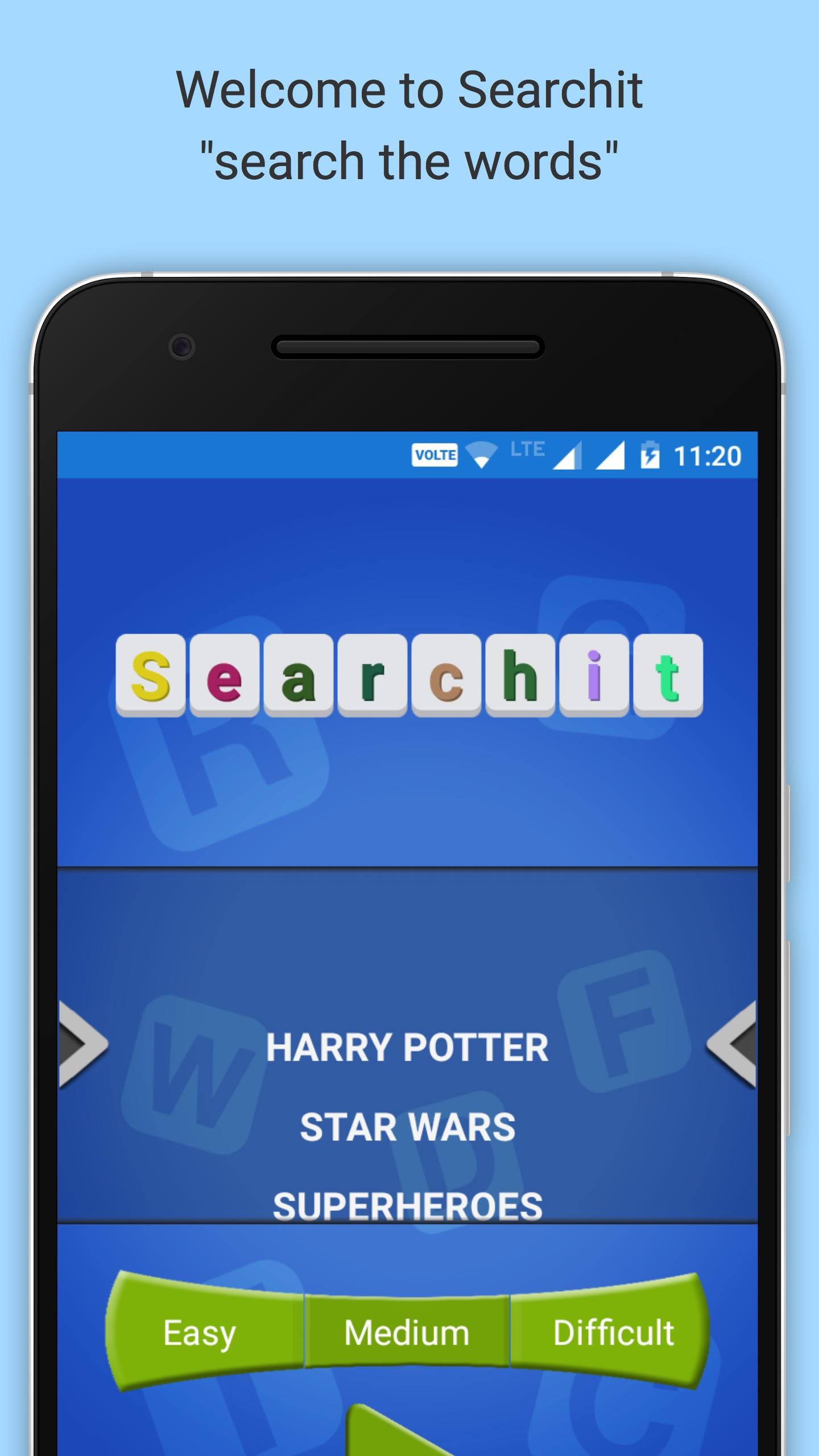 Searchit is classic word puzzle game. Find the hidden words. You have to find secret words on board.