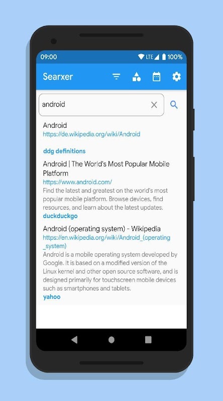 Mobile app for searching the web with Searx.