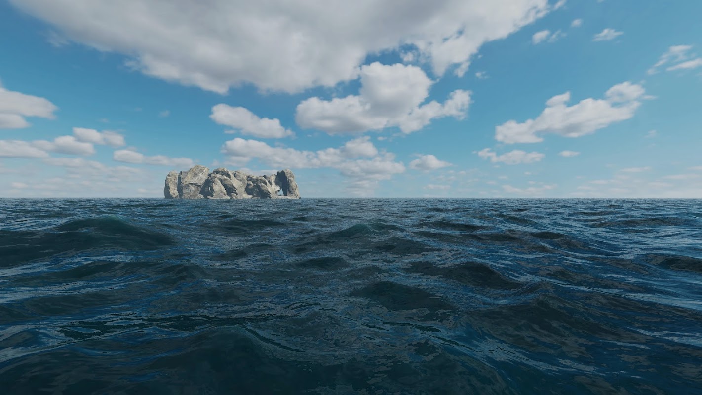 • Dynamic Ocean: Benchmark with realistic weather conditions like regular and storm waves.