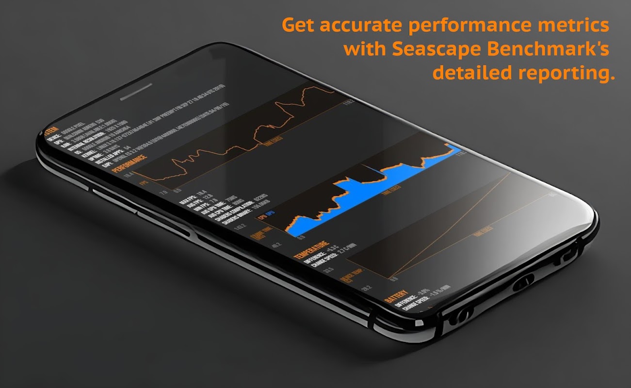 • Comprehensive Metrics: Get detailed performance info with min, max, & average FPS, frame time chart, and device temperature changes.